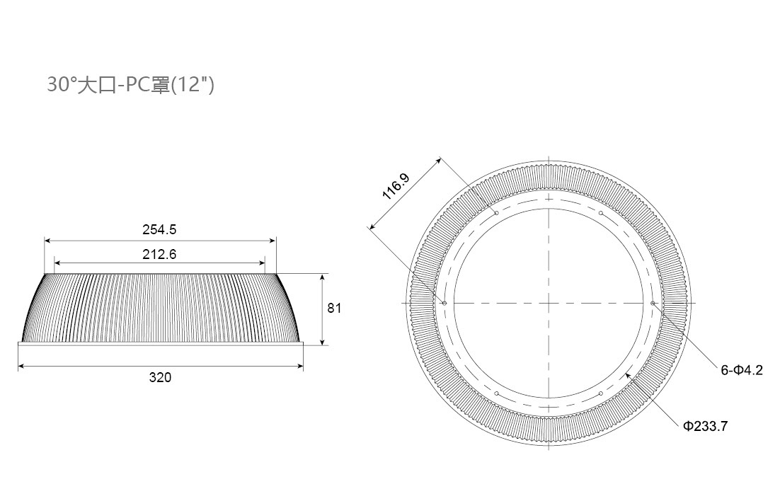30°大口-PC罩(12")